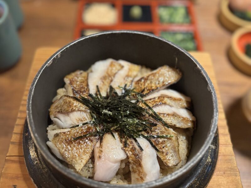 最初はそのまま食べ、〆にのど黒出汁をかけて食べます。