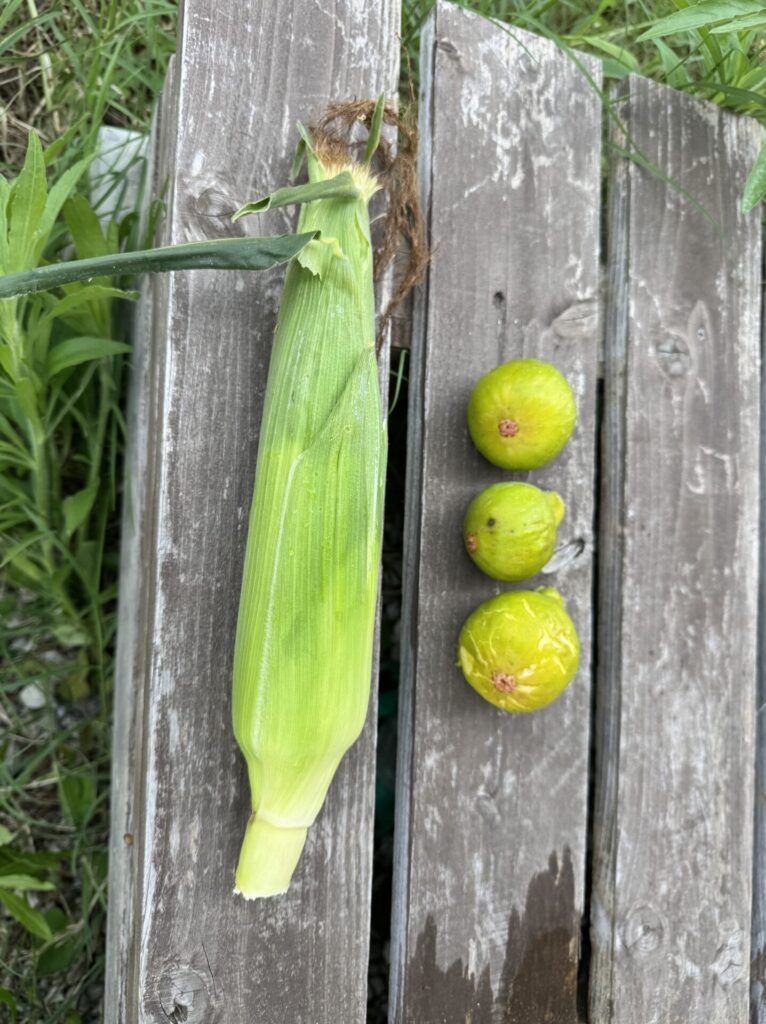 今年も畑で栽培しているイチジク、スイートコーン収穫できました。
